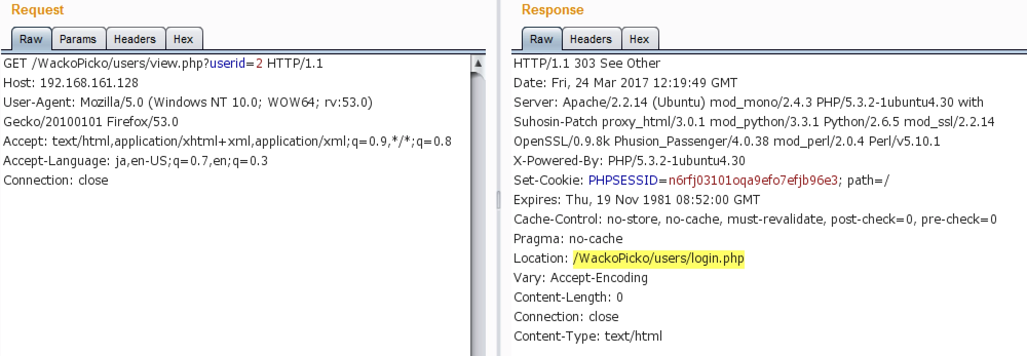 WackoPickoにログインしていない状態で写真一覧ページにアクセスすると、図2のようにログインページにリダイレクトされました。このページではアクセス制御が行なわれており、ログインした状態でなければアクセスできないようです。他のユーザーがアップロードした写真を見るにはログインしなければなりません。