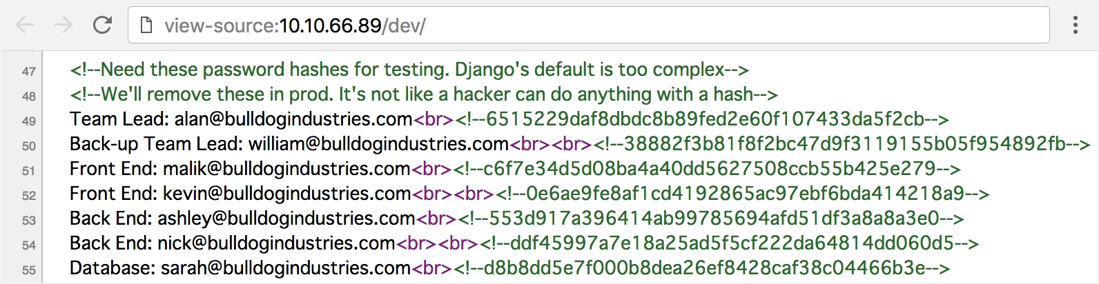/dev/ のページソースを見ると、ハッシュ値のような文字列がHTMLコメントとして記載されている。