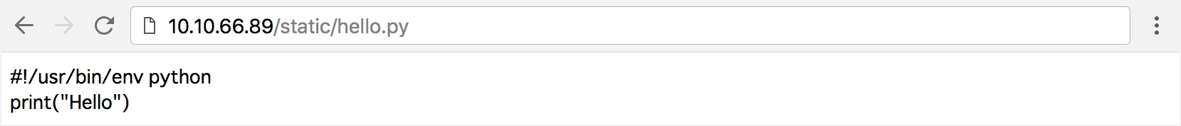 WebShell機能から実行するのではなく、Webサーバのドキュメントルート配下にファイルを作成し、Webアプリケーションとしての実行を試みる。CSSや画像が格納されている /static/ というディレクトリにPythonスクリプトを置き、ブラウザからアクセスするが実行されない。