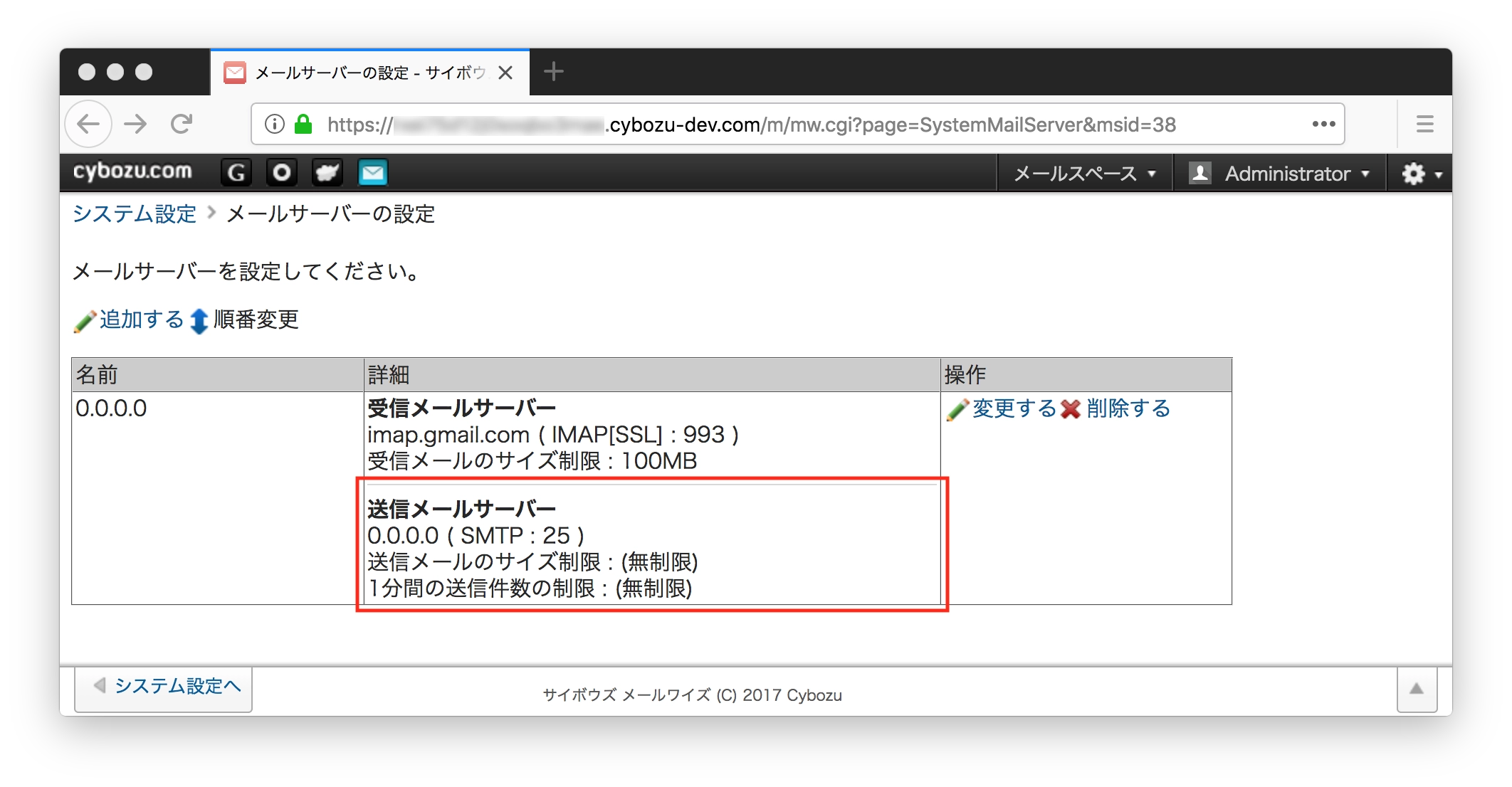 なぜ 127.0.0.2:25 ではSMTPサーバーに接続できず、0.0.0.0:25 では接続できたのか。ブラックボックスであるため原因は不明だが、サイボウズの内部ネットワークに存在するSMTPサーバーをメールワイズに登録できた。