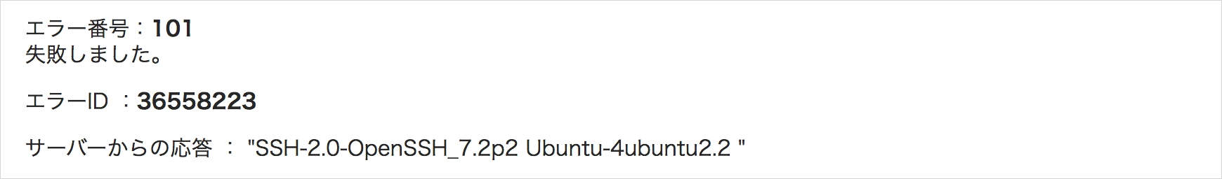 127.0.0.2:25 ではSMTPサーバーは動作していないが、接続リクエストは送信できていることがエラーの内容から読み取れる。ポート番号を変更して 127.0.0.2:22 に接続リクエストを送信すると、エラーの内容にサーバーからのレスポンスが含まれる。