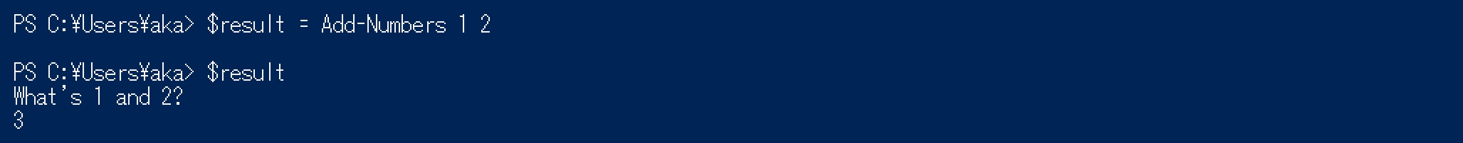 Function Add-Numbers([int]$one, [int]$two) {