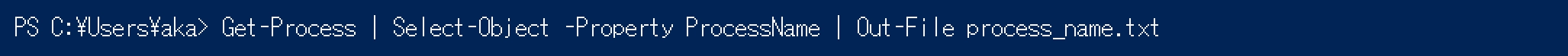 PowerShellでもLinuxと同様にリダイレクト( > や >> )を使用できるが、勉強会では Out-* コマンドレットによるリダイレクトを推奨していた。またパイプライン( | )もLinuxと同様に使用できる。PowerShellのパイプラインの出力はテキストではなくオブジェクトになるため、awk や sed のようなコマンドで整形する必要がない。例えば、実行中のプロセスの名前だけをファイルに書き出す場合、以下のようにコマンドを実行すればよい。Select-Object で指定したプロパティの情報だけをファイルに書き出せる。