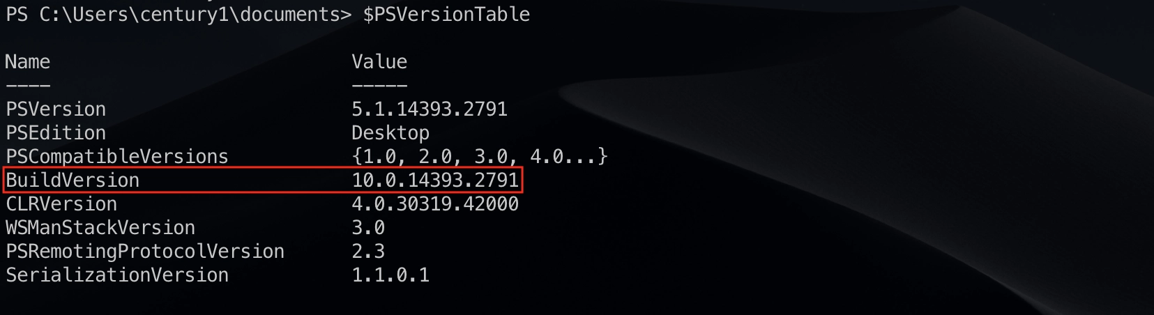 The password for Century2 is the build version of the instance of PowerShell installed on this system.