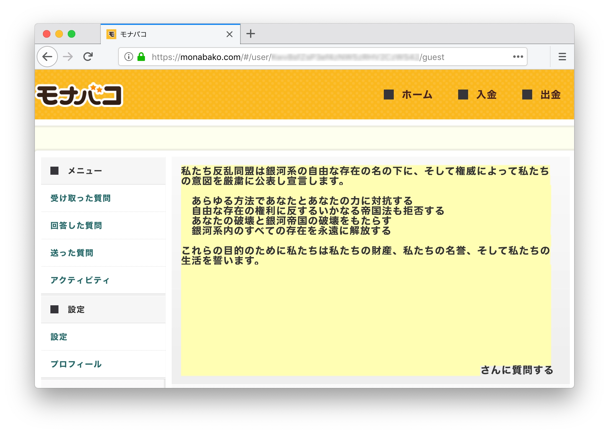 モナバコに表示されるプロフィール名での例